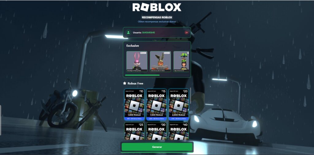 En internet circulan muchos sitios o aplicaciones que prometen darte Robux gratis solo por ingresar tu usuario o hacer clic en un botón. La mayoría de estos llamados “generadores” son falsos, peligrosos y están diseñados para: